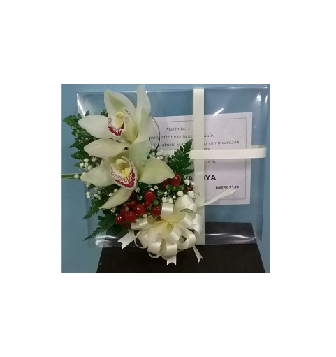 Arreglo floral dos orquideas especial para decorar bono de condolencias o tarjeta con mensaje de condolencias