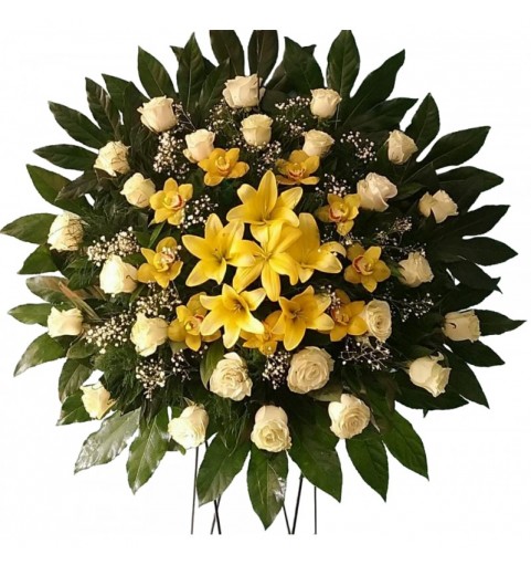 Arreglo floral Condolencia Rosa Blancas Orquídeas y Lirios