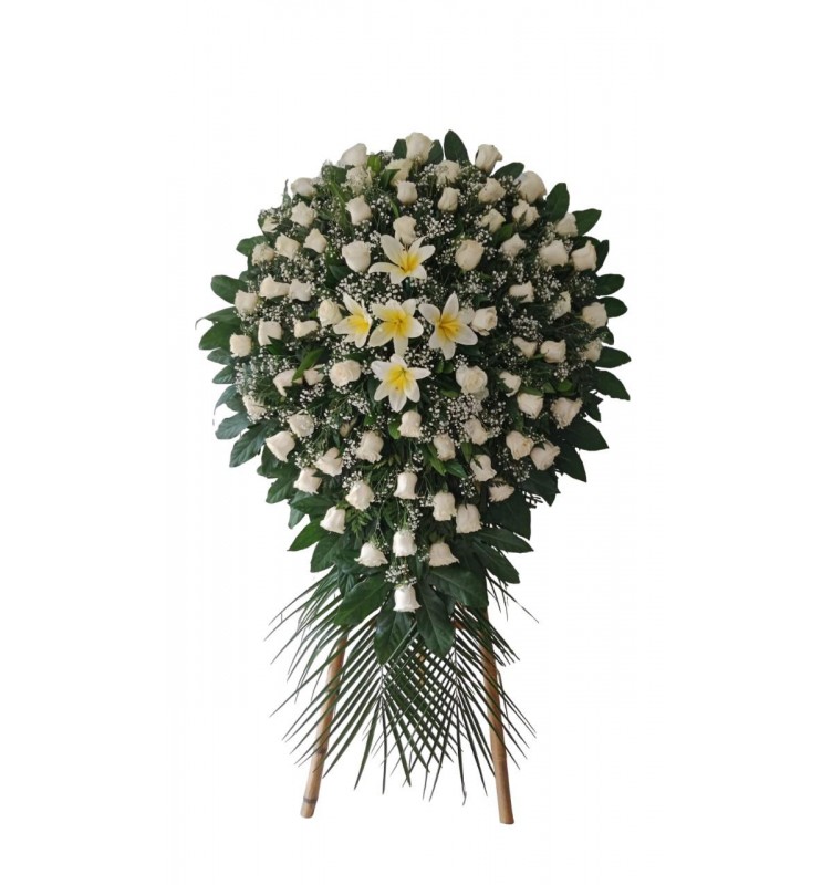 Hermoso Arreglo floral en rosas y lirios especialmente seleccionados.