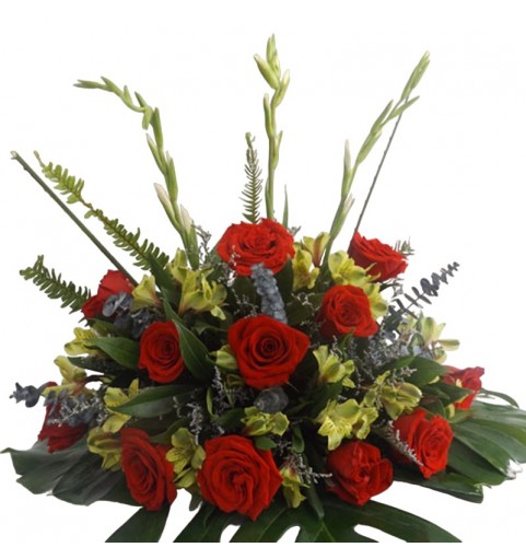 Expresa tus más sentidas condolencias con este bello arreglo floral elaborado con delicadas rosas.